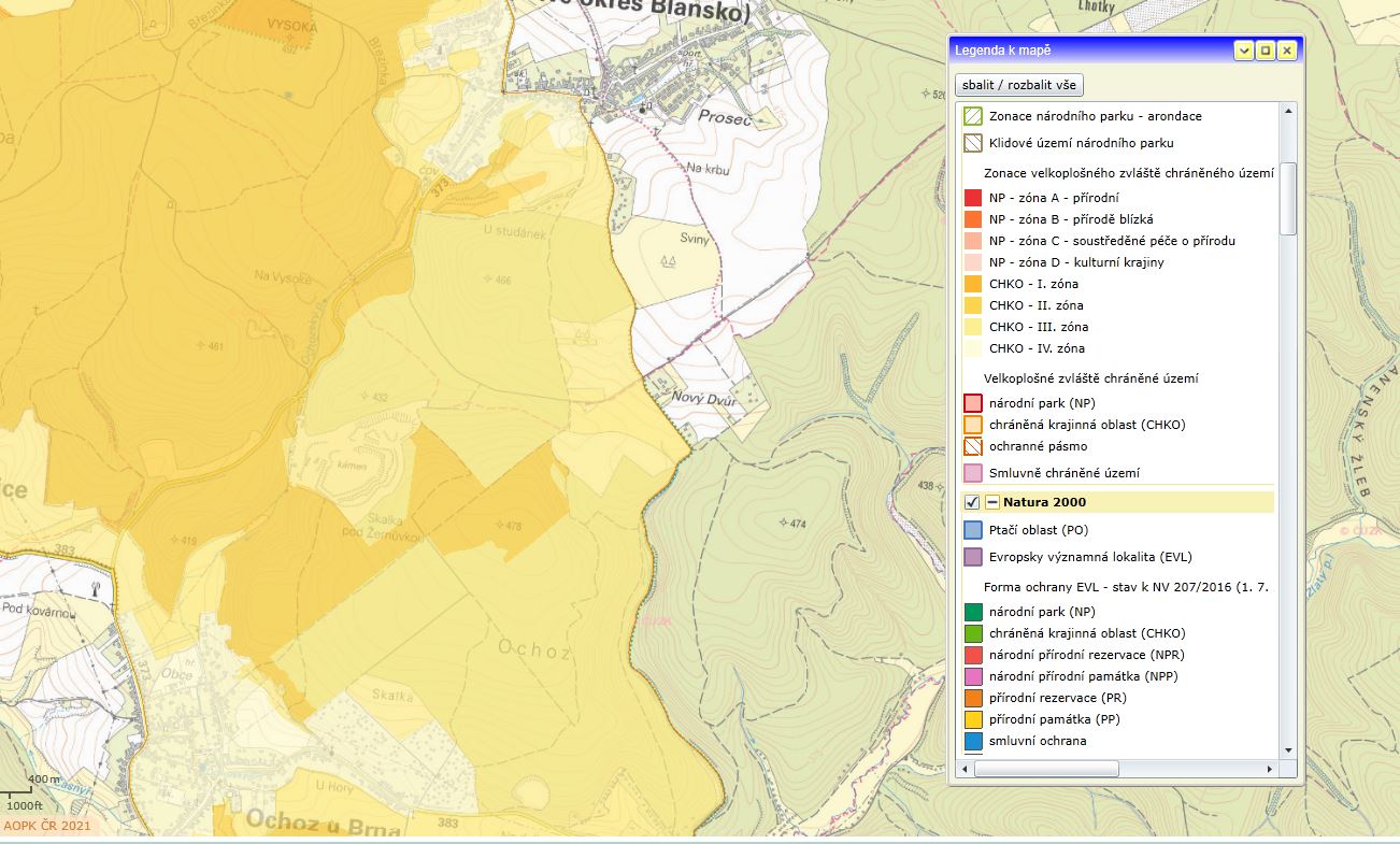 I. zóna - pouze PR Březinka, ŠLP Křtiny, těžba zde neprobíhá
