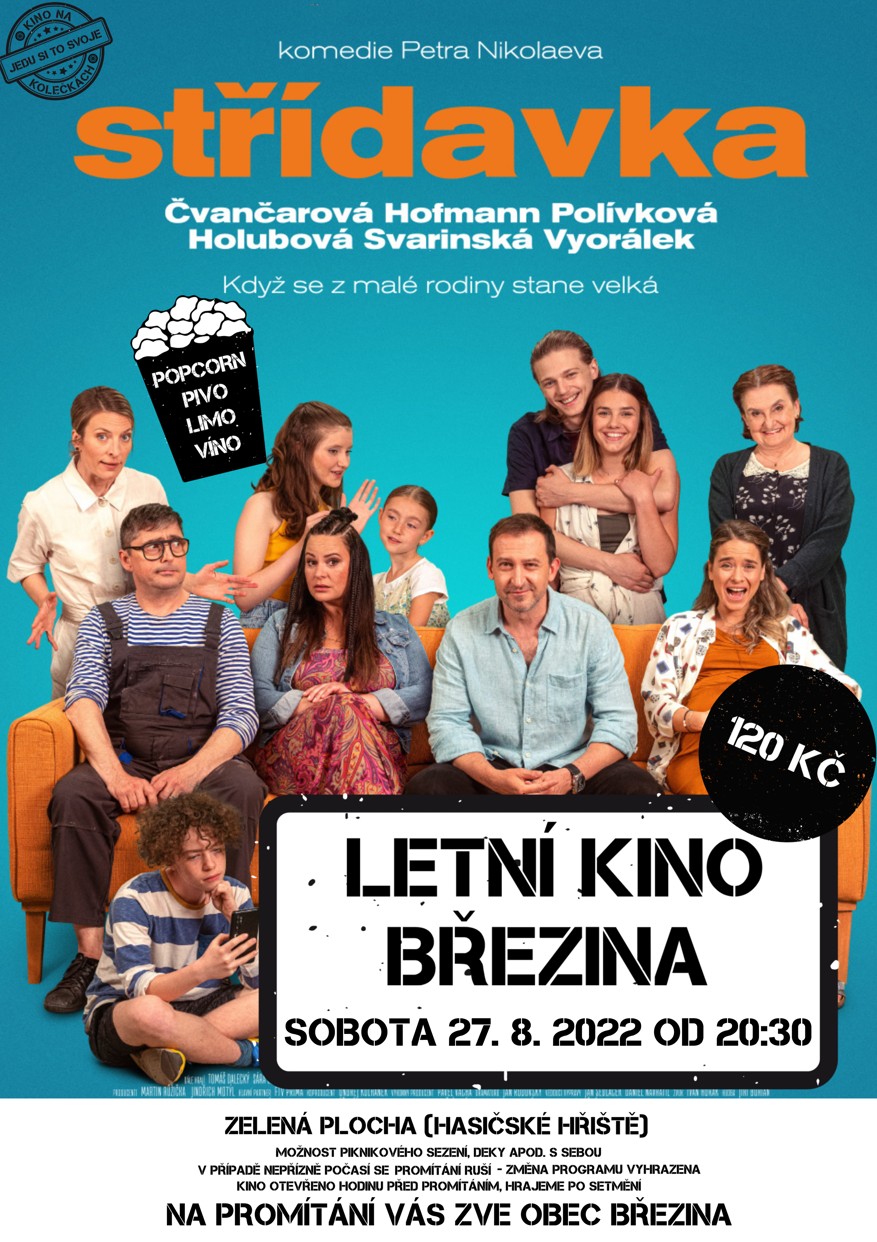 Už se nám to pomalu blíží, letní kino v Březině. Minule nám bohužel počasí plány zhatilo, ale tentokráte bude určitě krásně a v sobotu 27. srpna nás čeká horká filmová novinka, český film Střídavka.